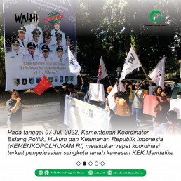 Mataram 07/07/2022, Kementerian Koordinator Bidang Politik, Hukum dan Keamanan Republik Indonesia (KEMENKOPOLHUKAM RI) melakukan rapat koordinasi terkait penyelesaian sengketa tanah kawasan KEK Mandalika menghadirkan Satuan Tugas Percepatan Penyelesaian Permasalahan Tanah di KEK Mandalika Provinsi NTB, Pemerintah Provinsi NTB, POLDA NTB, TNI (KOREM 162/Wira Bhakti dan KODIM 1620/Loteng) dan 4 orang Kuasa Hukum yang mengatasnamakan 14 Warga pemilik Tanah di dalam KEK Mandalika. Langkah tersebut adalah langkah yang baik sesungguhnya yang dilakukan oleh Pemerintah Pusat, Sayangnya, langkah baik tersebut hanya menjadi upaya Sepihak yang sama sekali tidak akan menyelesaikan masalah, sebab peserta yang dihadirkan di dalam rapat koordinasi tersebut tidak mengakomodir seluruh Warga pemilik lahan yang terancam tergusur, maupun warga terdampak lainya, sehingga bisa dipastikan hasil dari rapat koordinasi tersebut tidak bisa dijadikan sebagai dasar penyelesaian sengketa tanah di dalam KEK Mandalika. Dan jika hal tersebut tetap dipaksakan maka terang bahwa Pemerintah RI dan ITDC sama sekali tidak memiliki iktikad baik untuk menyelesaikan persoalan yang terjadi di dalam KEK Mandalika.