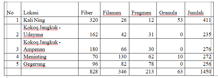 Tabel Kontaminasi Mikro plastik di Perairan Kota Mataram dan Kabupaten Lombok Barat