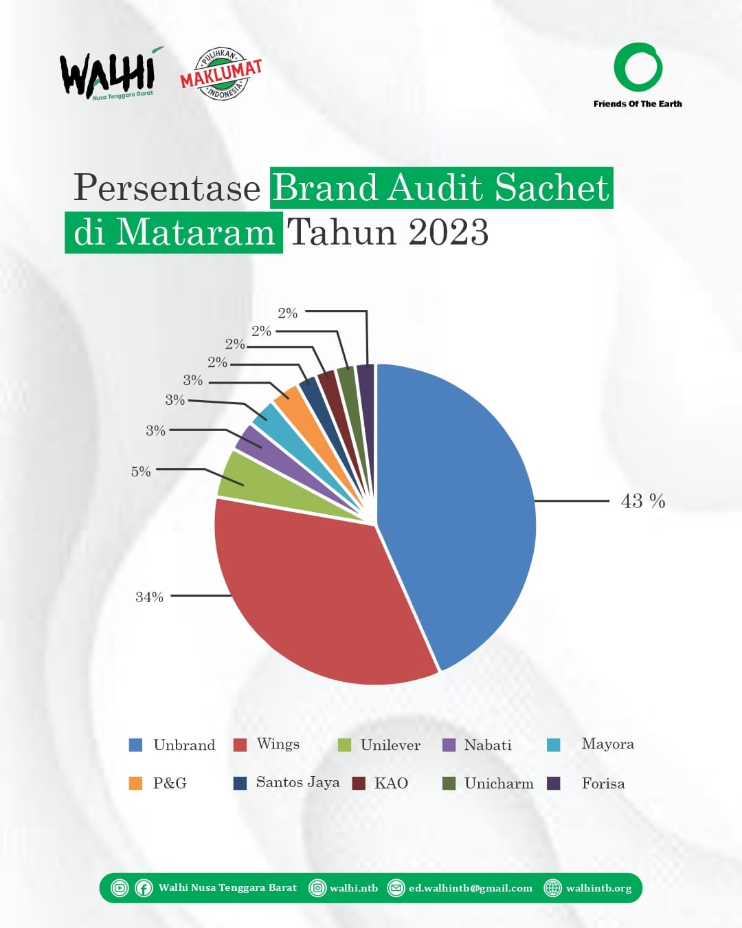 Tim investigasi juga melakukan Brand Audit untuk mengetahui jenis dan produsen sampah plastik yang banyak dijumpai tertimbun di Sungai Meninting. Dari 1000 piece sampah yang dipunggut di Sungai Meninting di Desa gegerung Kecamatan Lingsar Kabupaten Lombak Barat dan di Kokoq Jangkuk di temukan 9 Produsen sebagai pencemar adalah PT WINGS, PT UNILEVER, PT NABATI, PT MAYORA, PT P&G, PT SANTOS JAYA, PT UNICHARM DAN PT FORISA